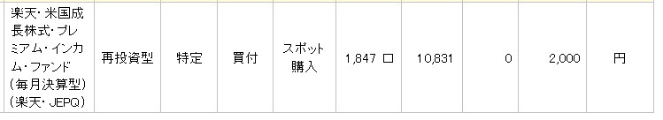 まだ購入口数が少ない楽天・米国成長株式・プレミアム・インカム・ファンド(毎月決算型)(楽天JEPQ)を購入。